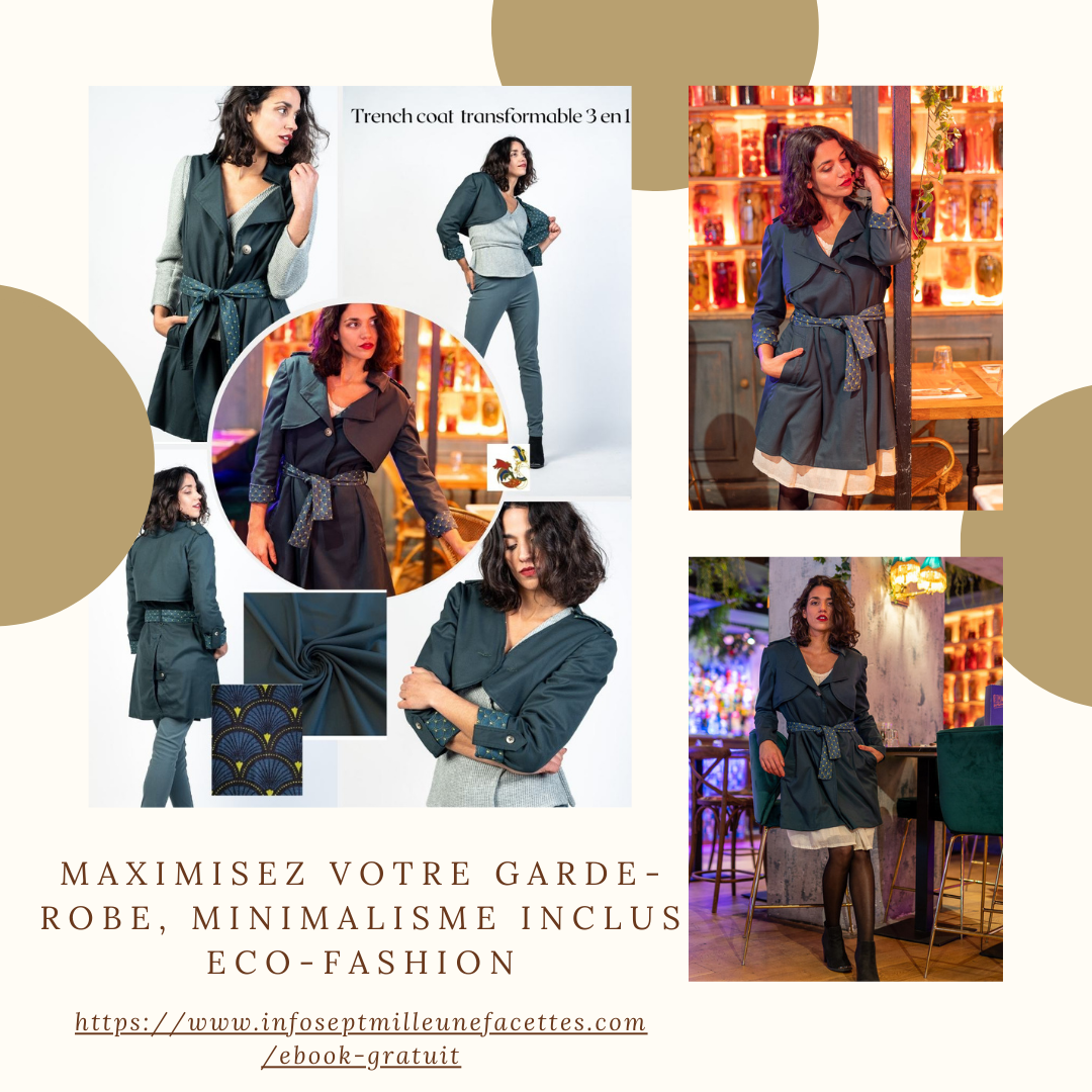Transformez votre trench en veste courte, boléro chic ou robe croisée selon vos besoins. Moins de vêtements à emporter, plus de looks possibles, idéal pour la femme active et voyageuse.