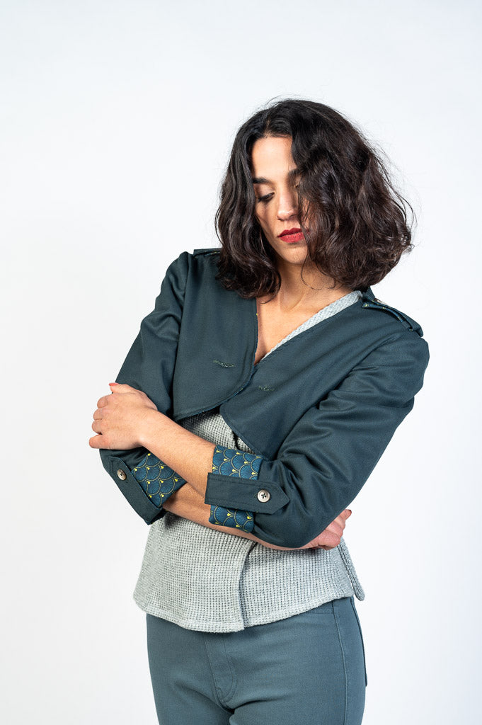 Conçu pour les femmes actives et voyageuses, il se transforme selon vos envies : veste courte, boléro chic, robe croisée ou trench classique.